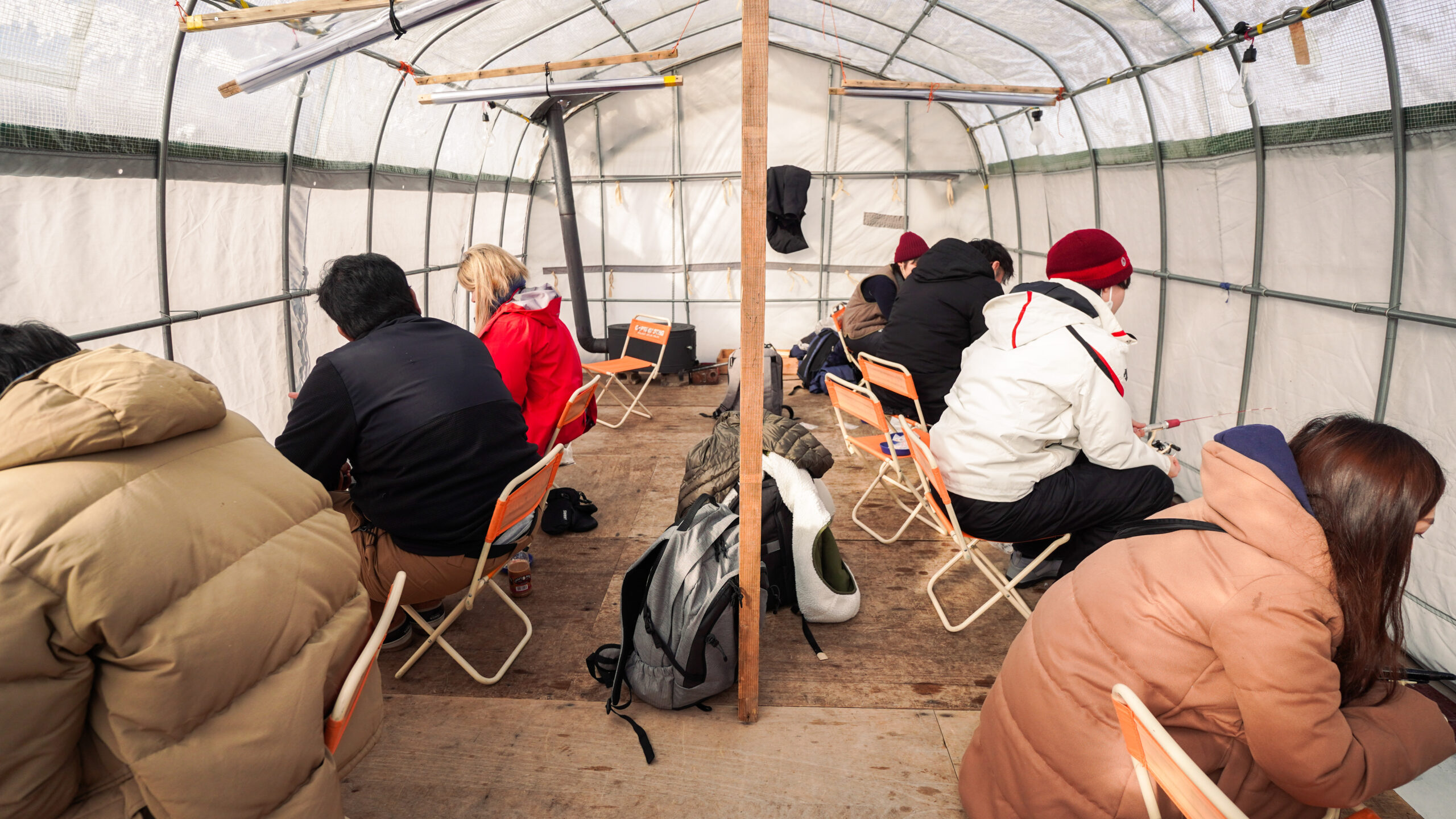 テントの種類によって収容人数が異なりますが、一番大きなテントでは薪ストーブを完備しているので、現地スタッフから薪を購入していただければ身体を温めながら釣り体験ができますよ!